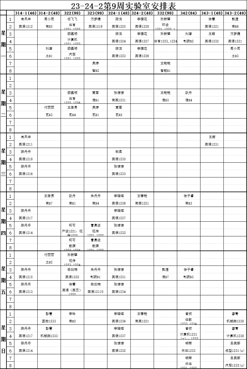 【实验教学】23-24-2第9周实验室安排表