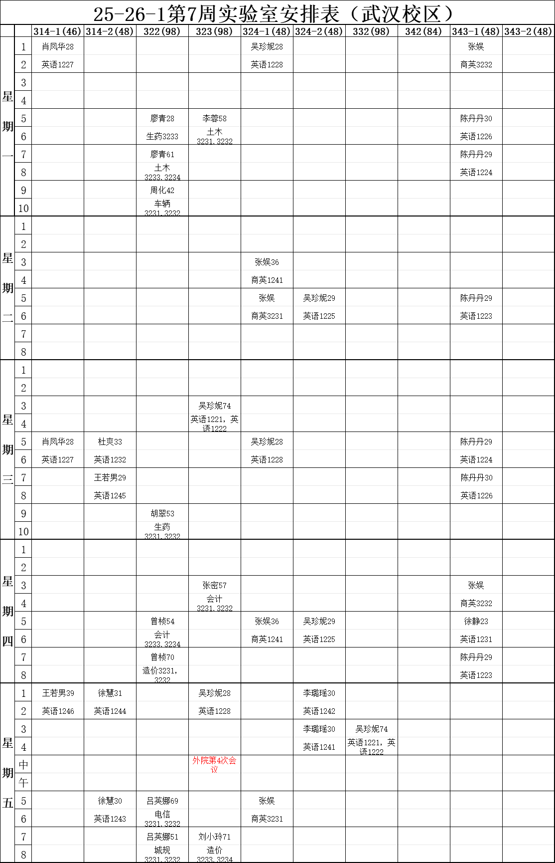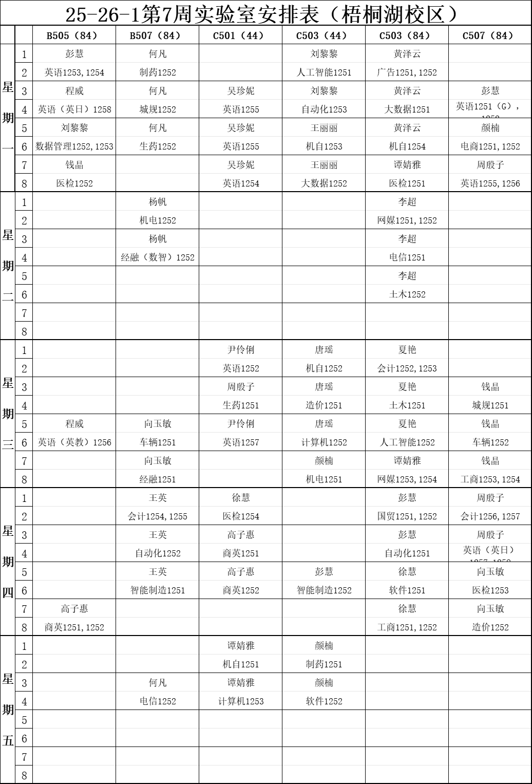 【实验教学】25-26-1第7周实验室安排表