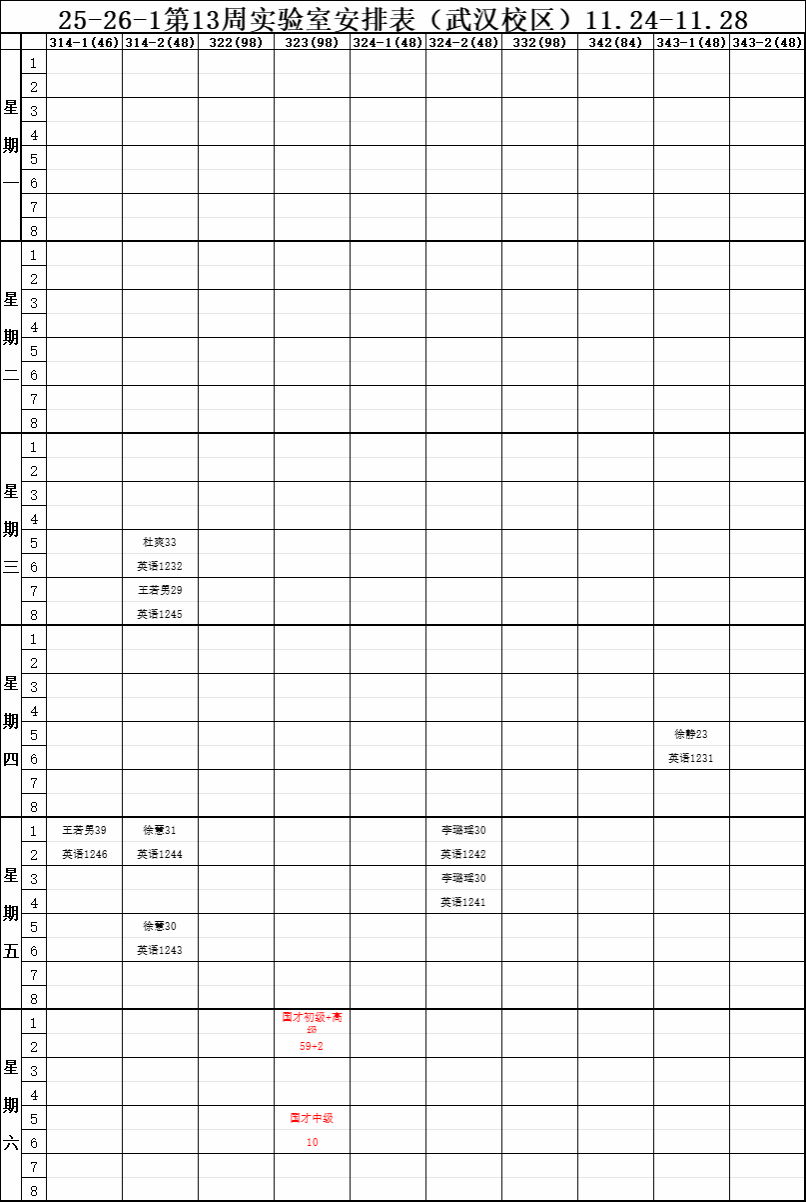 【实验教学】25-26-1学期第13周实验室安排表