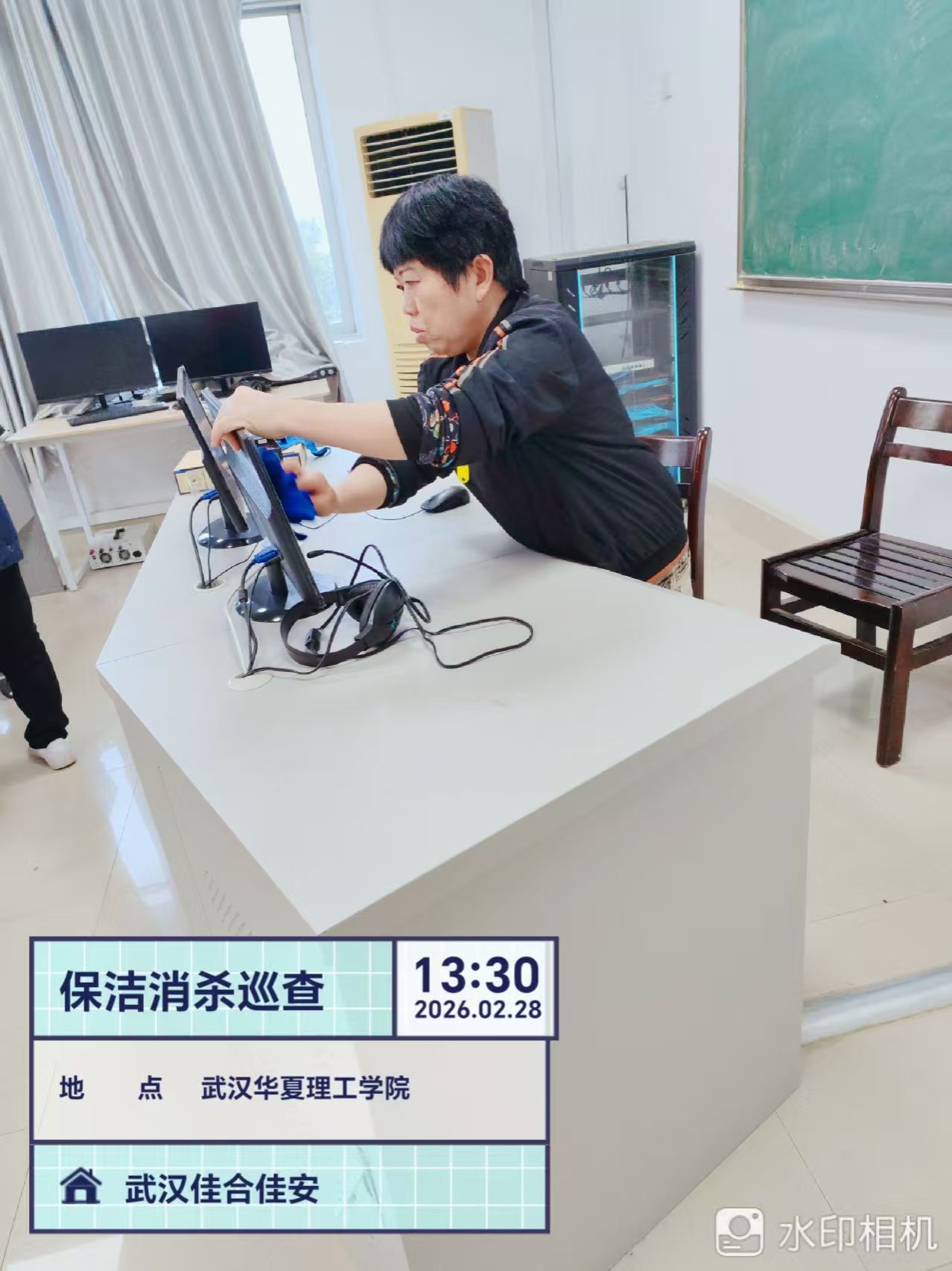 自查过程中,学院同步开展环境卫生大扫除。对实验台面、地面、门窗、机柜、键盘耳麦等高频接触部位进行深度清洁,彻底清除卫生死角,做到物品摆放整齐、环境清爽有序。对排查发现的问题现场登记、建立台账、明确责任人与整改时限,实行销号式整改,确保隐患清零。
