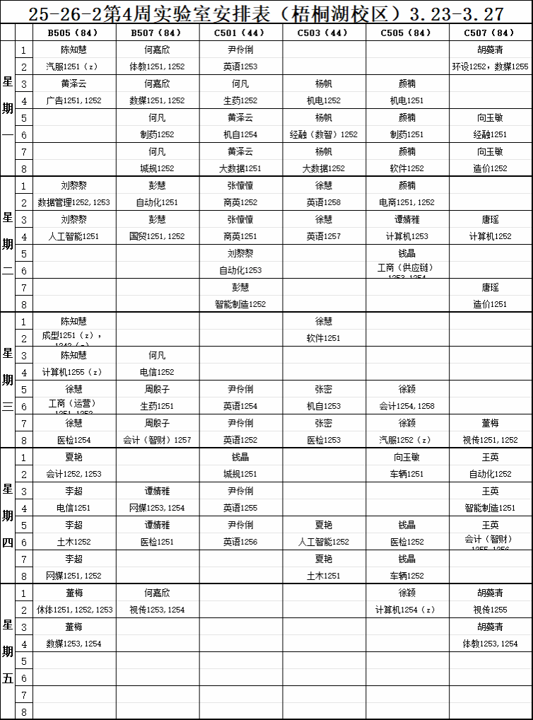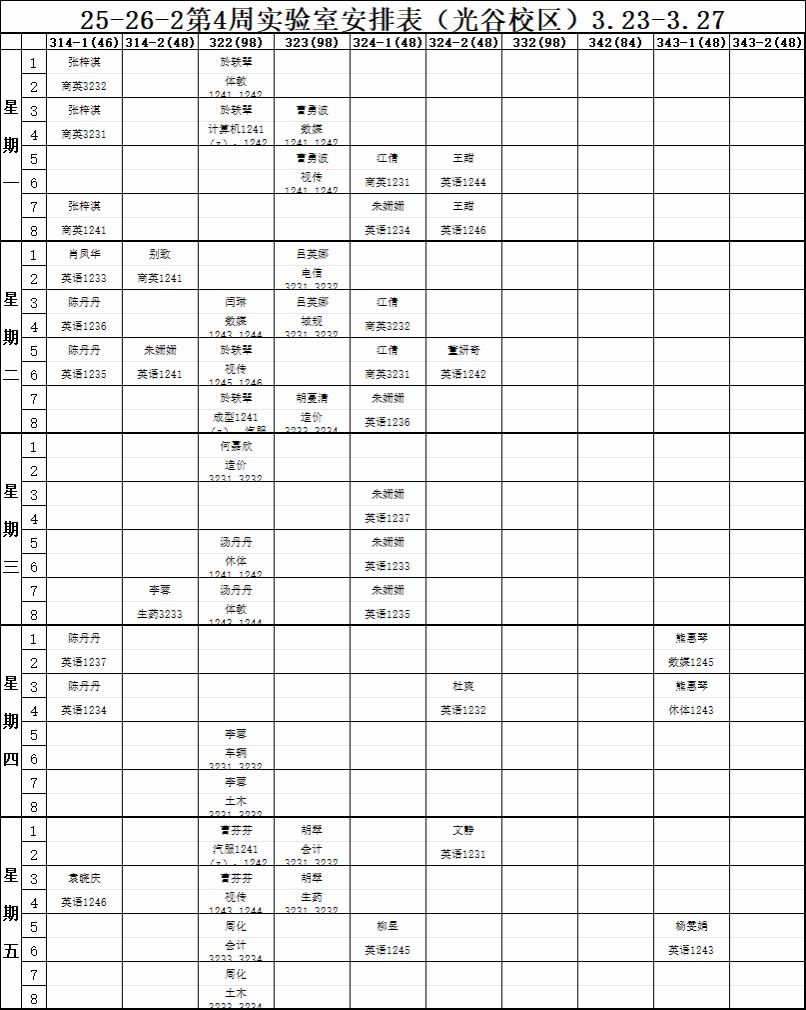 【实验教学】2025-2026-2学期第4周实验室安排表