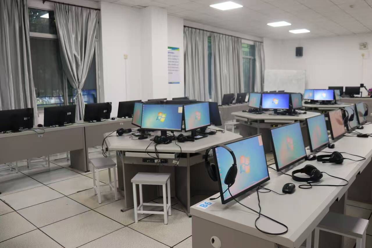 主要仪器设备为:同声传译云终端、同步语言传输机、云模块工作站、云桌面管理软件、云网络同传会议、翻译教学及训练软件、学生计算机等。该实验室目前承担了同声传译训练、英语口译教学任务以及同声传译会议室功能。