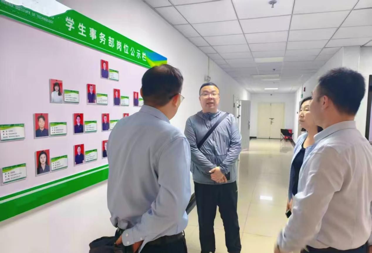 最后,访问团一行来到了学生事务大厅。这里,各学院学工办集中在一楼大厅办公,形成了“大学工”的协同工作局面。龚部长向访问团介绍道,这种布局旨在进一步提升服务效率,更直观的体现“一站式”学生社区“零距离”服务的核心理念。对此,来访团表示,这种“大学工”的模式不仅增强了部门间的沟通与协作,更让学生感受到了实实在在的便利,真正做到了以学生为中心,体现了教育服务的温度与效率,值得未来借鉴学习。