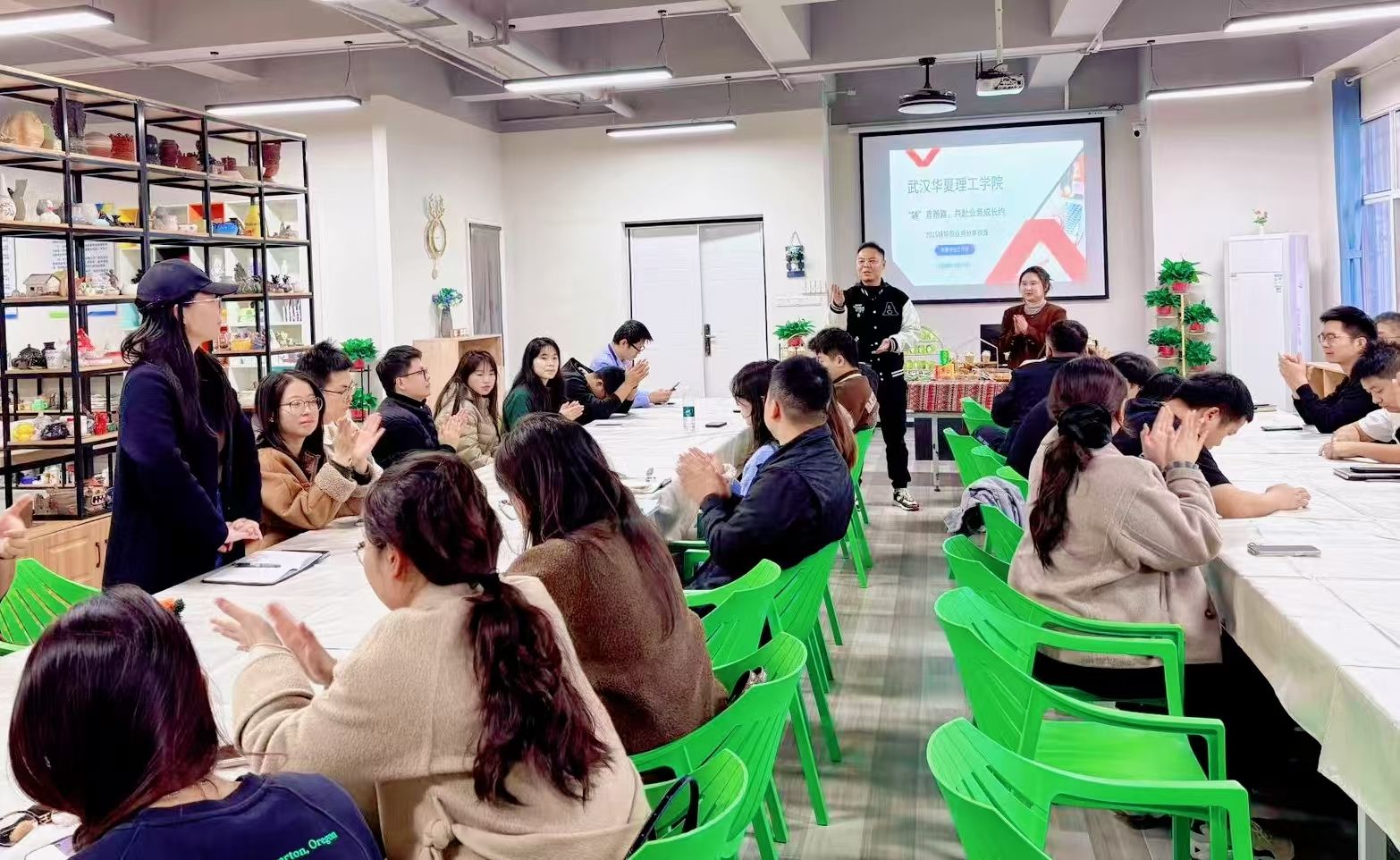 11月13日上午,学工部精心组织的辅导员业务分享沙龙在光谷校区与梧桐湖校区同步举行。其中,光谷校区活动在艺术楼陶艺室顺利开展,全体辅导员积极参与。本次沙龙由思想政治教育办公室主任马祁主持,并特别邀请学工部资助专员毛雨晴老师、艺术设计与传媒学院王琳老师作为嘉宾,围绕学生工作中的实际问题展开深入交流与分享。
