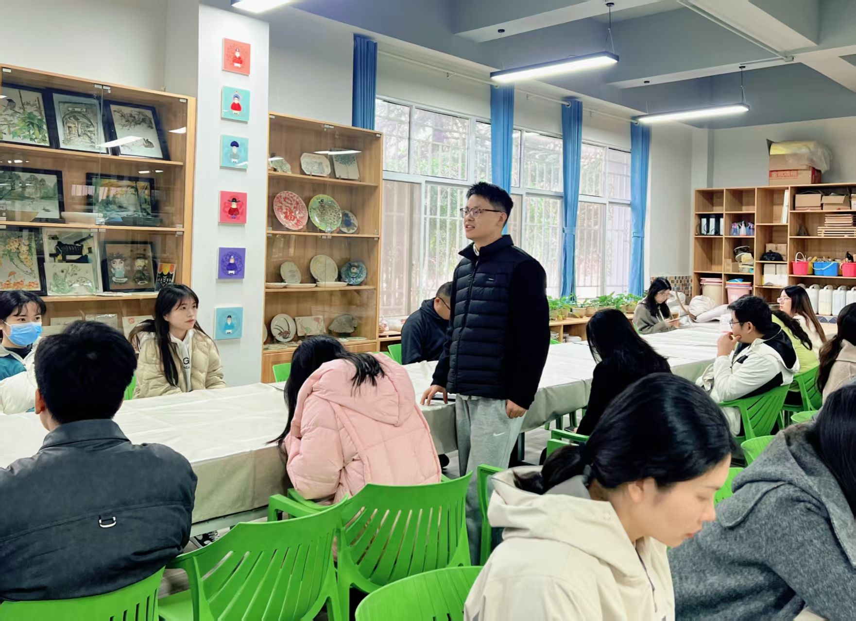 12月11日上午,由校学工部主办的辅导员业务分享沙龙第三期活动在光谷校区与梧桐湖校区同步举行。其中,光谷校区在艺术楼陶艺馆开展,全体辅导员积极参与,本次活动以“毕业生就业工作实务研讨与能力提升”为主题,特邀艺术设计与传媒学院的焦洁老师共同参与,活动由思想政治教育办公室主任马祁担任主讲。