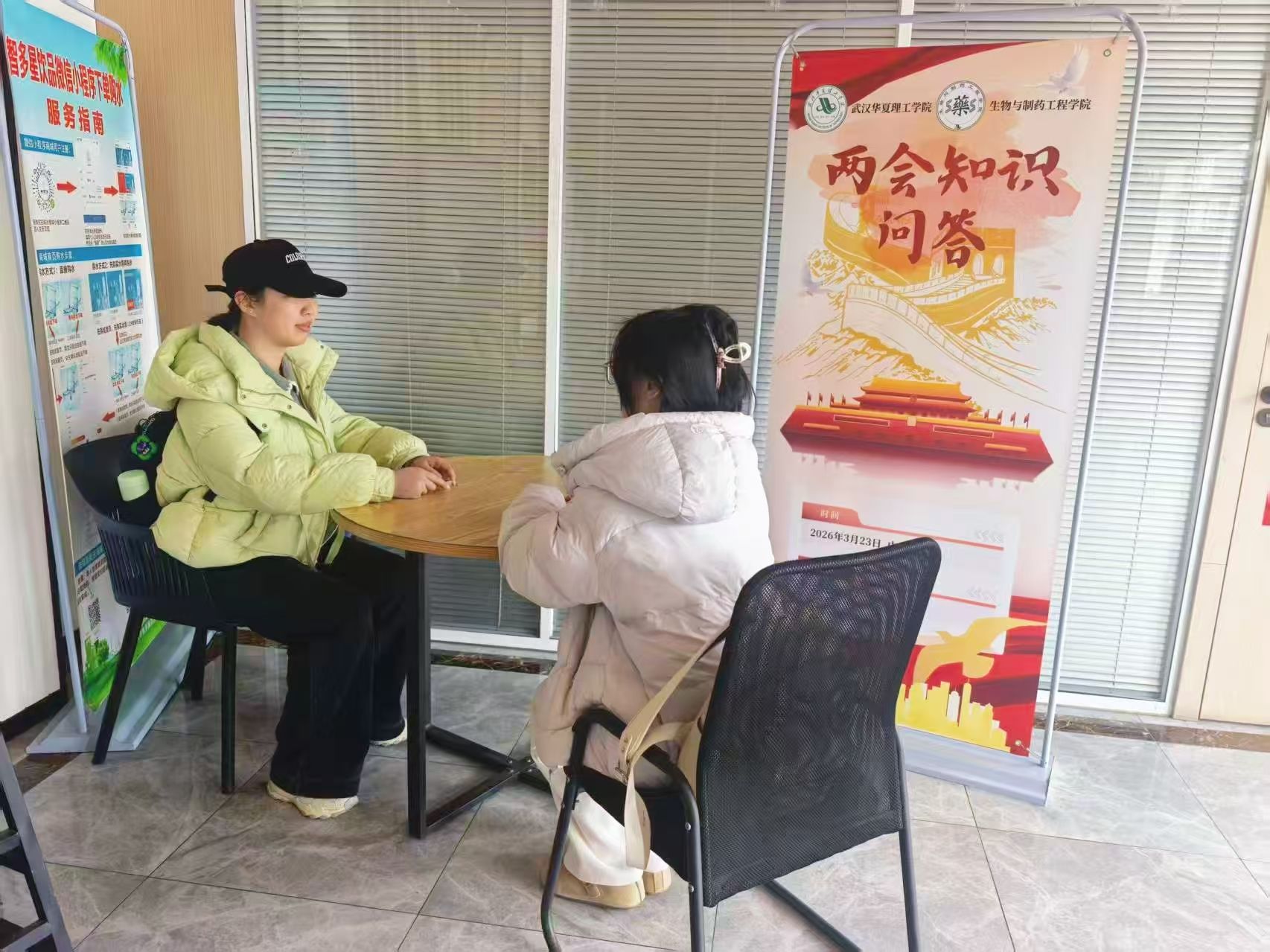 各学院积极响应,立足专业特色和学生实际,利用晚点评时段,采取线上线下相结合的方式,开展了形式多样的思政教育。生物与制药学院学工办在学生社区精心组织“两会知识问答”活动,通过图文并茂的海报和简明易懂的宣传单,将两会基础知识送到同学身边,现场互动踊跃,同学们在轻松的氛围中加深了对国家政策的理解。信息工程学院学生会依托“扬帆华夏生涯工作室”,举办主题分享沙龙,围绕两会精神与职业发展展开交流,引导学生将个人成长规划与国家发展需求紧密结合。外国语学院辅导员韦文信深入学生寝室,利用晚查寝时段与学生促膝交流,结合两会热点与青年成长话题进行政策解读和思想引导,在轻松家常的氛围中传递时代强音。土木建筑工程学院辅导员昌仪琳通过线上平台,与毕业班学生分享两会中关于就业政策的相关内容,帮助学生及时了解政策动态,结合自身实际做好就业规划,增强面向未来的信心与底气。此外,还有部分学生以小组研讨的方式在校园内自主学习,围绕两会热点话题开展交流探讨,在互学互鉴中深化对国情政策的理解。