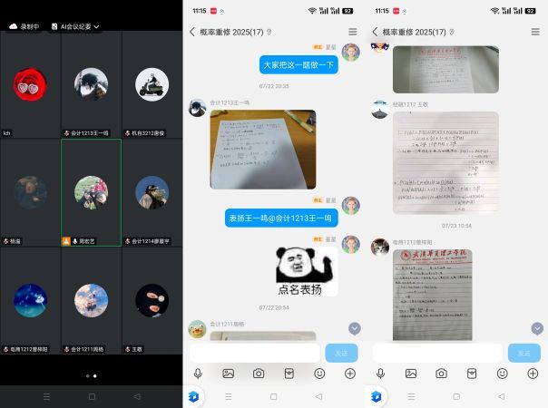 给学生教授《概率论与数理统计》课程的数理课部周宏艺老师每次课提前1小时坐在电脑前,为线上重修课做准备。她特意给旧电脑加装了散热风扇,还自制了手机支架固定辅助摄像头,只为清晰展示课件演示。“线上教学更要注重细节,不能让网络成为学习的阻碍。” 她的直播课上,弹幕互动不停,课后qq群总能看到她深夜回复的消息。不仅如此周老师还在群里提供上课的视频回放,让学生能及时回顾和消化所学内容。