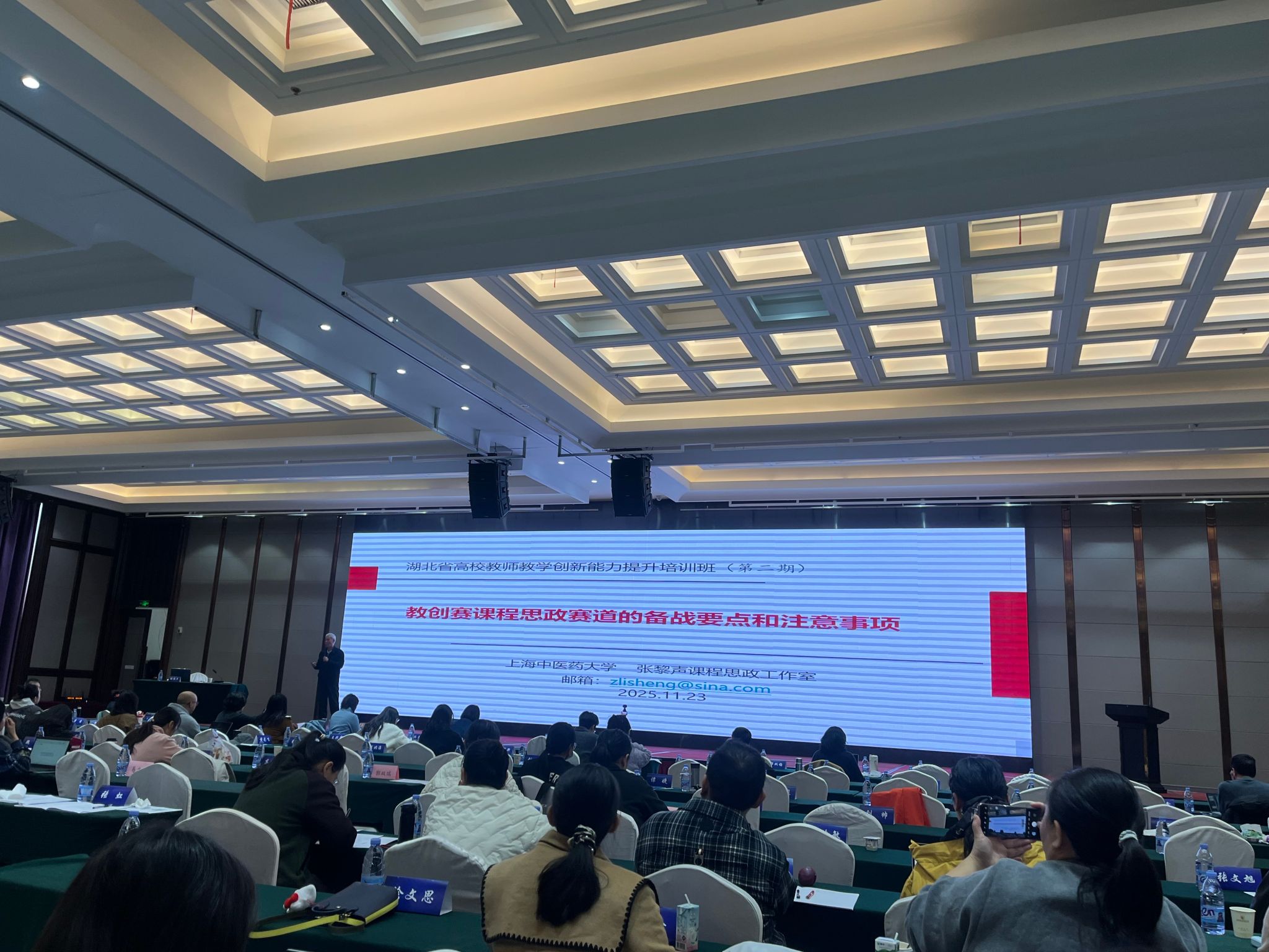 为深入贯彻新时代高等教育高质量发展的要求,助力各高校更好备战第六届全国高校教师教学创新大赛,湖北省高教育学会于11月22日—23日在武汉光谷潮漫凯瑞国际酒店举办了“高校教师教学创新能力提升培训班”,特邀全国教创赛评审经验丰富的专家和国赛一等奖获得者现场作专题分享,覆盖了新工科、新文科、新医科、课程思政、基础课程等五大核心赛道。本次培训旨在助力教师精准把握各学科教创赛评审标准,增强教学创新设计实操能力;推动不同学科教学理念与方法交流互鉴、优势互补;系统提升教师在不同学科的教学创新设计、实战应用及成果转化方面的综合能力,为备战教创赛筑牢根基,推动高等教育教学质量整体提升。武汉华夏理工学院信息工程学院数理基础与应用课部王玉霞主任、李自玲副主任、王玉婷等三位老师应邀参加了此次培训活动。