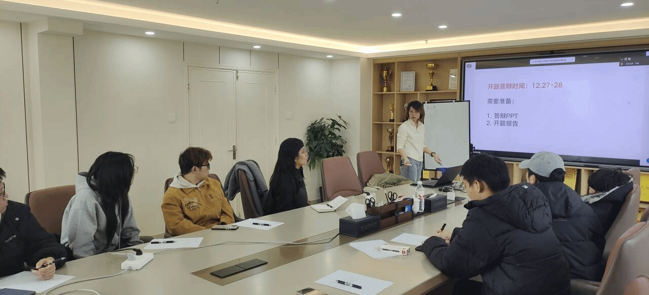 会议重点围绕毕业设计开题答辩的整体结构、开题报告撰写规范以及指导流程进行了说明。两位导师从选题定位、研究内容组织、技术路线表达等方面对开题答辩的基本逻辑进行了梳理,明确开题阶段应突出研究目的、应用场景、研究意义及技术可行性,为后续毕业设计奠定扎实基础。