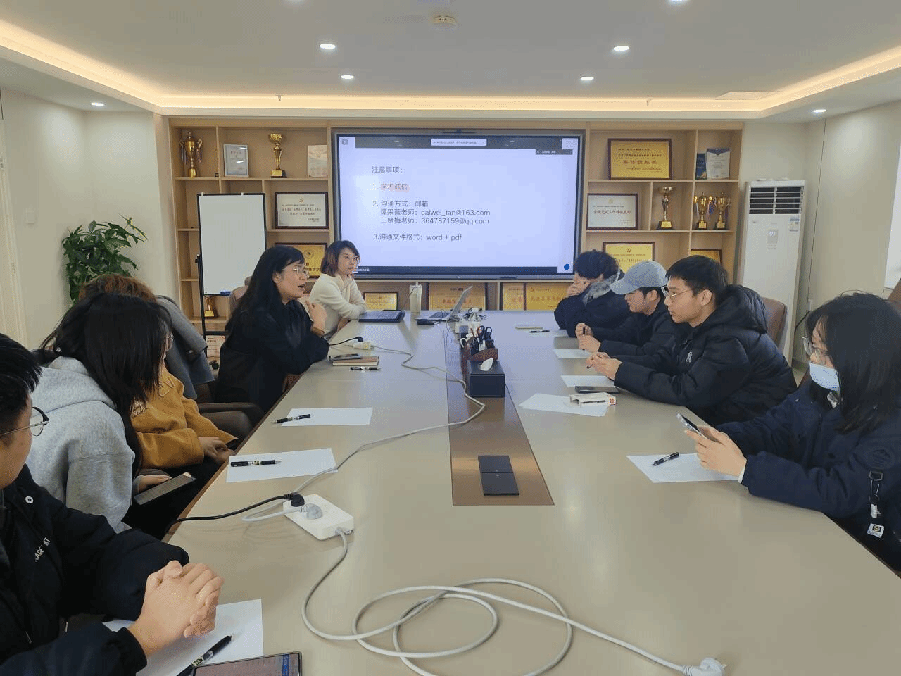 在交流中,导师团队特别强调毕业设计全过程的规范化与流程化管理,明确学术诚信是毕业设计的基本底线,要求学生严格遵守学术规范。沟通与提交材料统一通过邮箱完成,相关文件需按照要求以 Word 与 PDF 双格式提交,确保过程留痕、材料规范、指导高效。