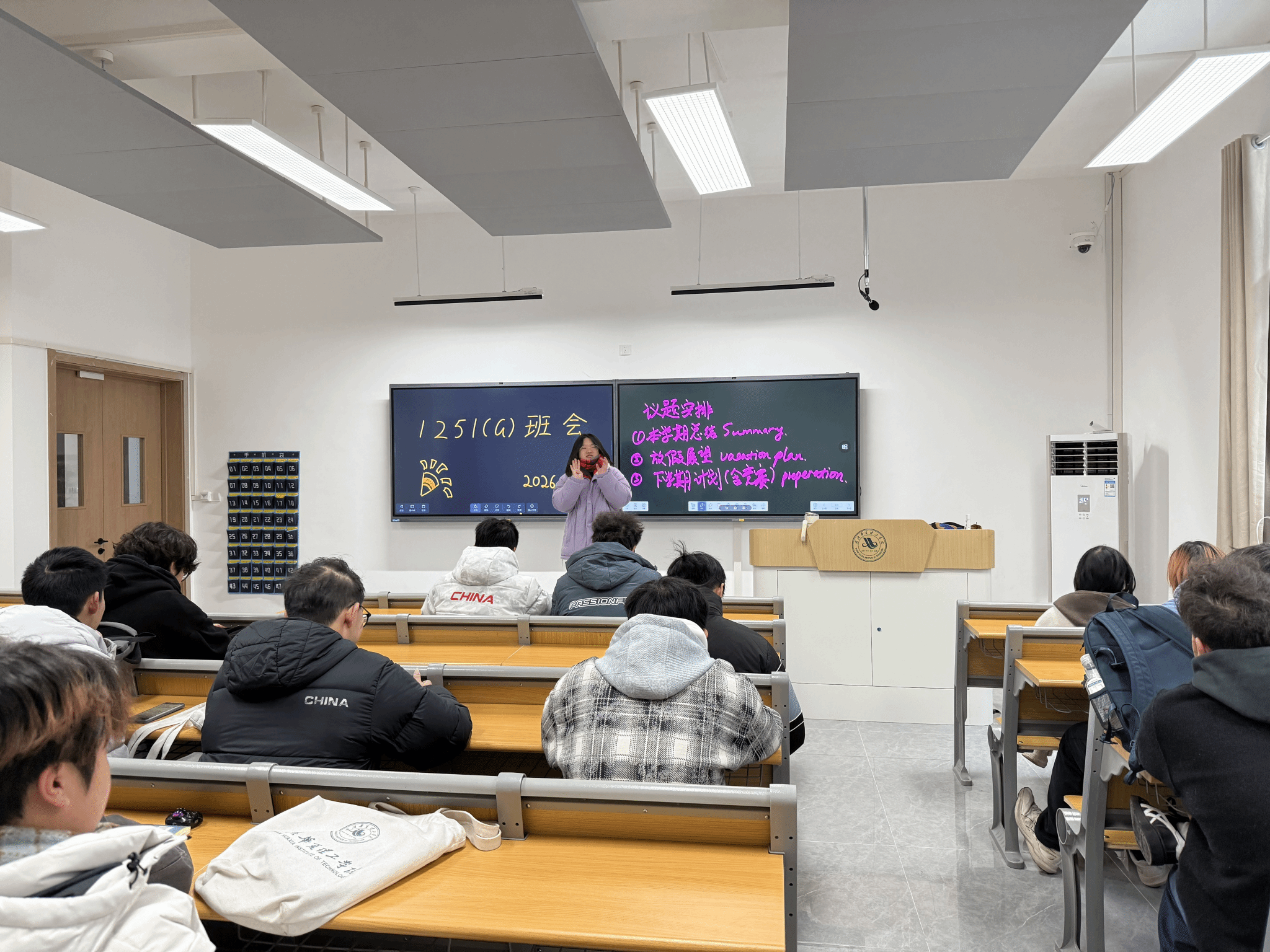 为帮助学生系统总结本学期学习情况,明确假期安排与下学期发展方向,国际班1251(G)于2026年1月5日召开学期末班会。班会由班主任谭采薇老师主持,并邀请同样具有留学经历的李漠老师参与交流与指导。