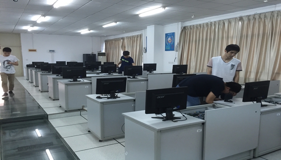 下午230分,辅导员向胜涛及他的学生朱小虎、李勇等来到实验室223,并马上开始了整理工作。在整理的过程中,大家都积极检测每一台电脑,确保前排的电脑可上网可受主机操控,并且无设备的损坏。将坏掉、缺少设备的电脑统一移到最后三排,确保前7排的电脑均能满足教学需求,也同时极大的方便维修工作。
