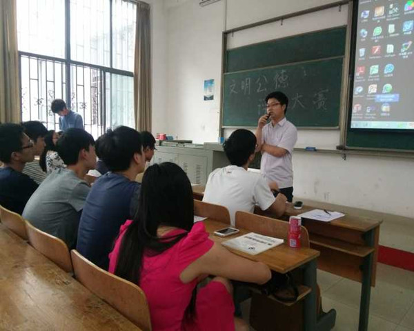 参与此次文明答辩的班级有测控1121班、测控1141班、通信1131班、通信1132班与通信1142。在主持人宣讲了会议礼仪后,答辩会正式开始。此次答辩十分精彩,各班都运用视频与ppt的形式向评委与听众清晰地展现了答辩的目的。首先上场的是测控1121班,该班主要从教室文明与生活文明这两方面进行了宣讲,简短的视频得到了评委的一致好评。其中最为优秀的要数测控1141班,精心准备的ppt与别出心裁的微电影给在场的所有人都留下了深刻的印象,赢来了现场阵阵热烈的掌声。比赛最终,测控1141班以86.9分获得第一名的佳绩,通信1132与测控1121以84分获得第二名,通信1131以78分获得第三名。在答辩结束后,由信息系党总支书记陈先亮老师对本次活动做总结,陈老师提到从本次的活动中可以看出我系学子对文明公德的重视与用心,大家别有用心的视频展现了我们信息系的特色,并希望同学们能将文明公德放在心中,做一个守文明、有公德心的大学生。