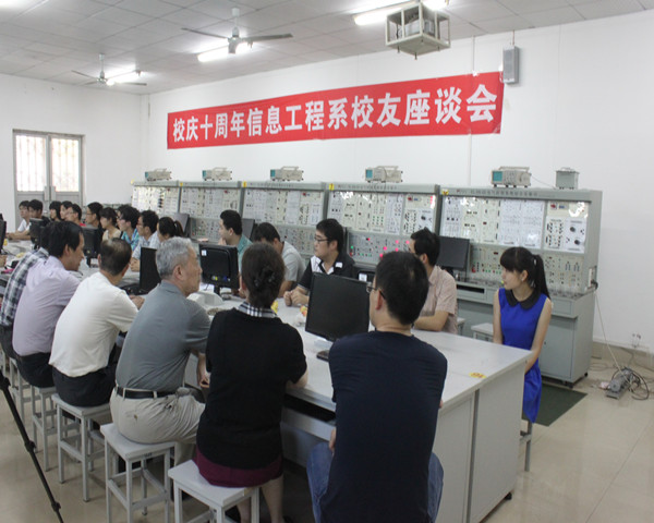 2014年5月29日,在我校成立十周年之际,信息工程系在实验楼412实验室隆重召开了校友座谈会。与会者包括系专家指导委员会老师、已毕业工作的学长学姐以及在读的各年级学生。