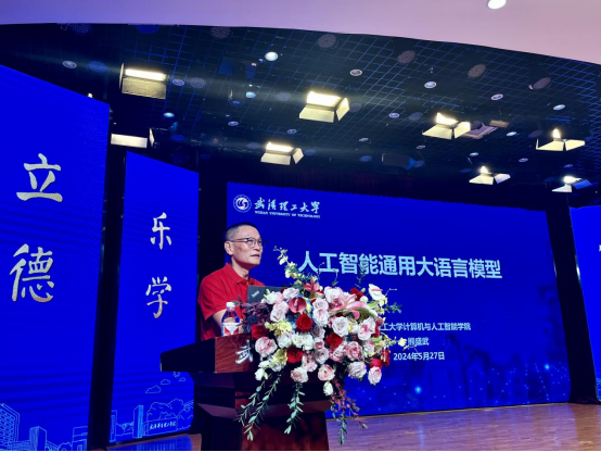 2024年5月27日,信息工程学院联合信息技术产业学院于学术报告厅成功举办校庆20周年系列学术报告会之人工智能通用大语言模型主题讲座。此次报告会我院特邀了武汉理工大学计算机与人工智能学院熊盛武教授作为主讲人,全院教师和学生代表参加讲座。