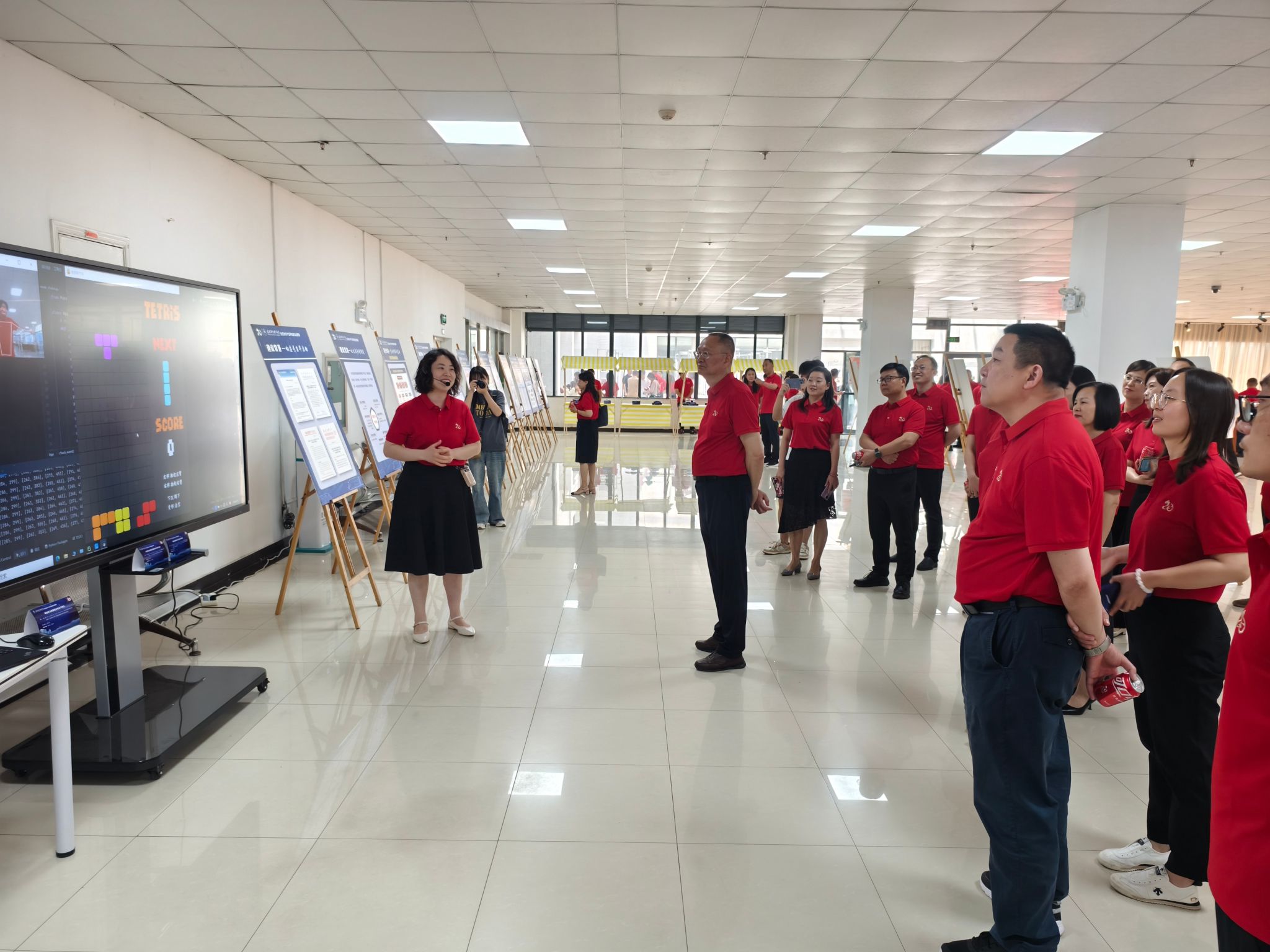上午10:40,校领导一行来到展览现场,观看了图文并茂的展板和人机互动的演示。我院执行院长夏婷为全体参展人员详细介绍了信息技术产业学院的建设历程、建设背景、建设思路、建设举措和建设成果,展示了信息技术产业学院近五年来在创新人才培养模式、双师队伍建设、提升人才培养质量、产教融合等方面取得的标志性成果。校领导充分肯定了信息技术产业学院取得的成绩,希望学院继续深化校企合作、加强学科建设、提高教育质量,实现资源共享和优势互补,拓展国际合作、推动产学研合作,并引领行业发展,以实现可持续发展。