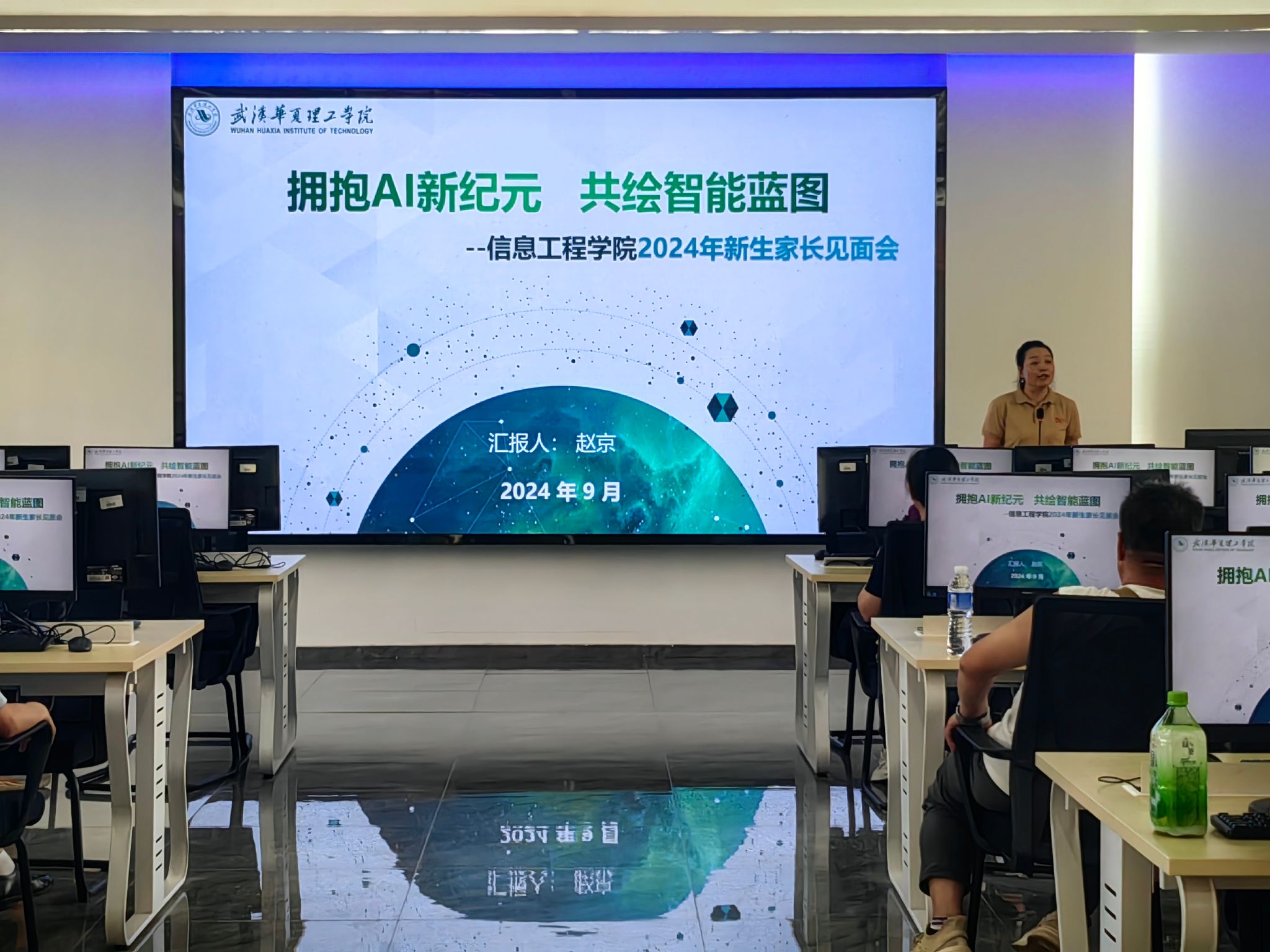 又是一年开学季,信息工程学院迎来了朝气蓬勃的2024级新生。为进一步加强家校沟通,共同促进学生的全面发展,9月7日下午2:00,信息工程学院在实验室432成功举办了“拥抱AI新纪元 共绘智能蓝图”2024级新生家长见面会。本次见面会吸引了众多新生家长参加,会议由副院长赵京主讲,党总支书记张平主持,各系部负责人也参加了见面会,现场气氛热烈而温馨。