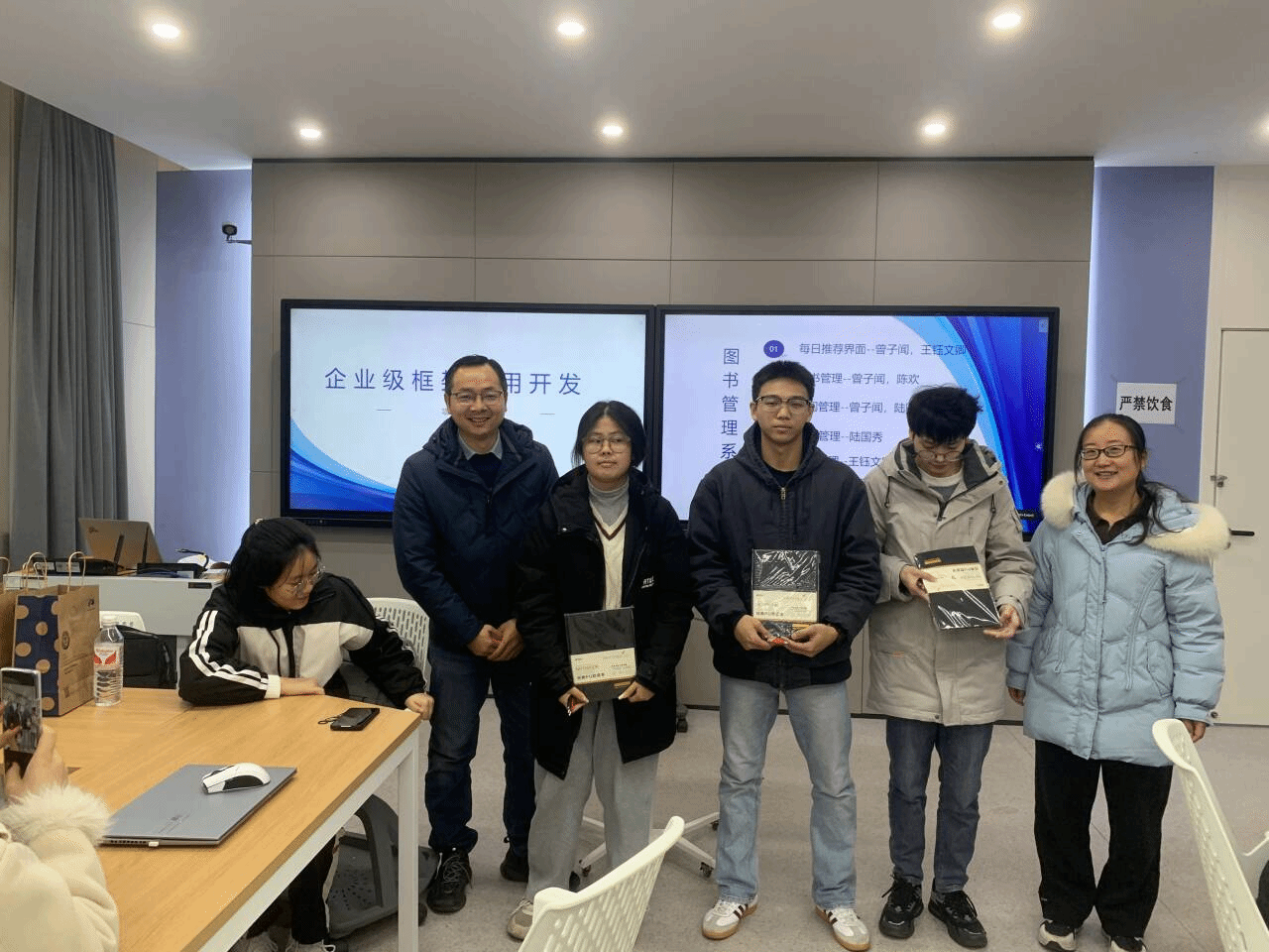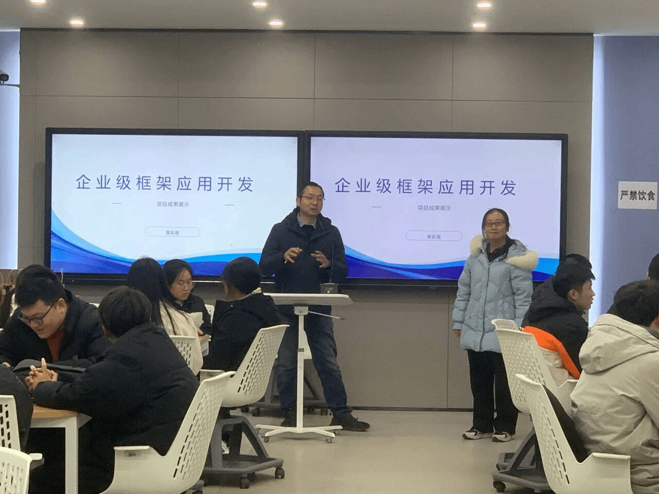 田总在课堂上详细介绍了企业级框架应用开发的重要性和发展趋势,强调了在云计算、大数据、人工智能等技术融合下,企业级应用开发面临的新挑战和机遇。在项目演示环节,学生们展示了他们基于企业级框架技术栈开发的项目。田总对每个项目都进行了细致的点评,不仅肯定了学生们的创新和努力,也提出了宝贵的改进建议。他强调,企业级应用开发不仅需要扎实的技术基础,更需要对业务流程的深刻理解和创新思维。田总还为表现突出的团队颁发了奖项,以表彰他们在项目中的卓越表现和团队合作精神。他鼓励学生们在软件开发的道路上不断探索和学习,不畏艰难,勇于创新。
