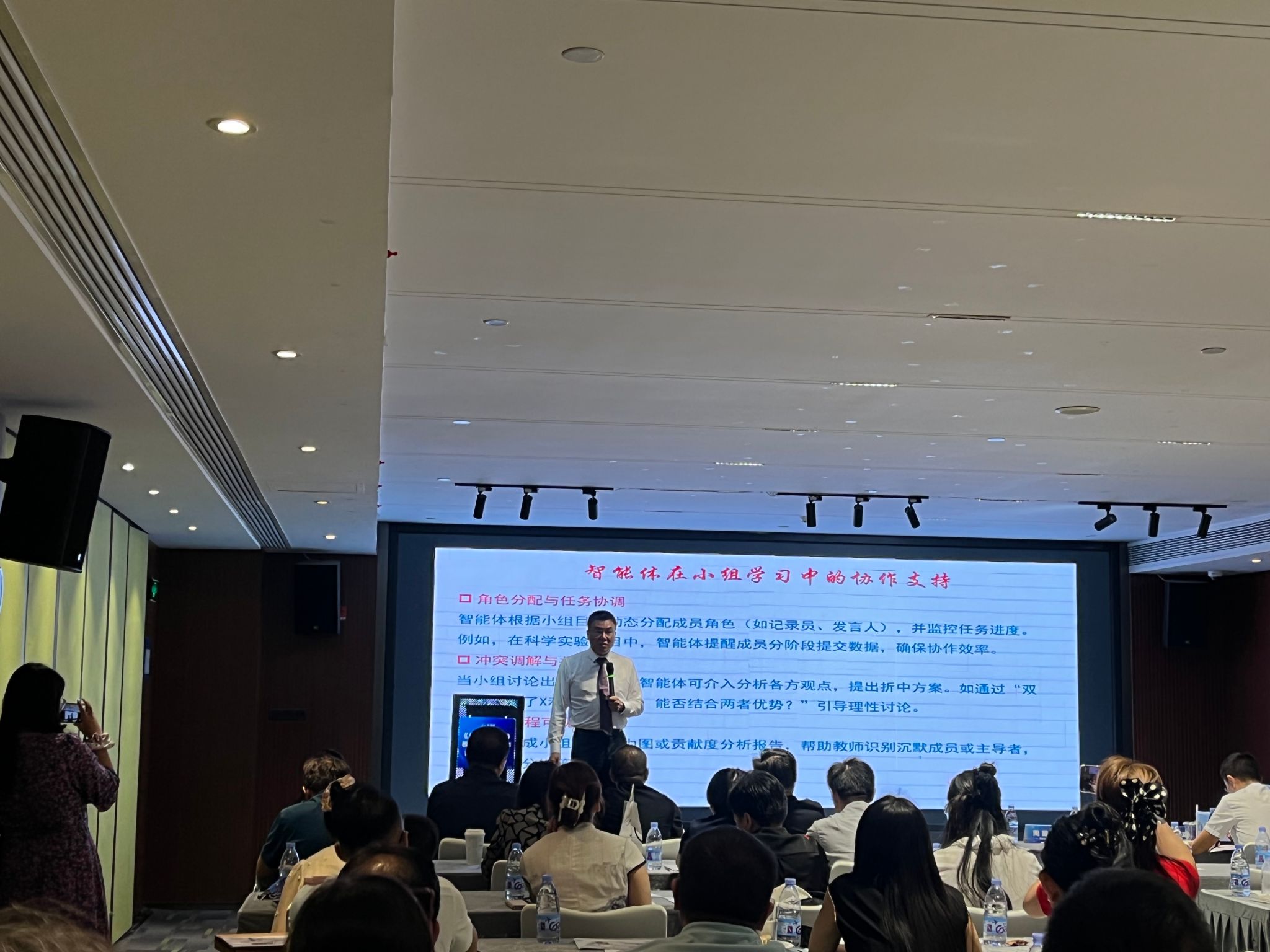 8月8日,由上海卓越睿新数码科技股份有限公司(智慧树网)主办的“从工具到伙伴——教育智能体与教师协同创新研讨会”在武汉市光谷希尔顿欢朋酒店成功举行。 来自华中科技大学、西安交通大学、中国地质大学(武汉)、武汉职业技术大学等高校的四位专家及智慧树网3位负责人分别作了分享报告,武汉华夏理工学院信息工程学院数理基础与应用课部王玉霞主任、李自玲副主任与来自湖北省的一百多名教师及教学管理者齐聚一堂,共同探索人工智能技术与教育教学的深度融合路径。