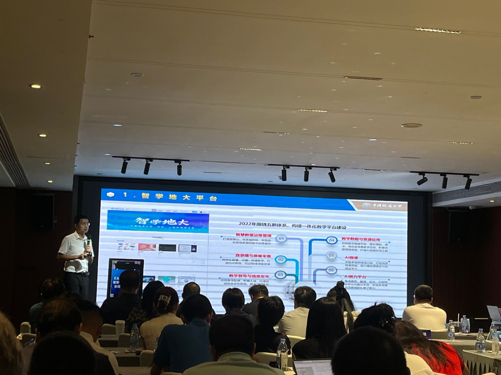 随后,中国地质大学(武汉)信息化办公室李琪副主任分享了《高校人工智能赋能人才培养》,他重点介绍了学校在人工智能赋能教学管理与服务方面的探索与实践,通过构建“能力+资源+平台”三位一体的教学平台,实现教学资源的智能化配置与教学过程的动态优化,为师生提供全方位支持。他提到将日常教学的直播课录播作为重修课的教学资源,AI微课和微科研资源有效提升了学生自主学习能力,同时也为教师提供了更便捷的教学工具。