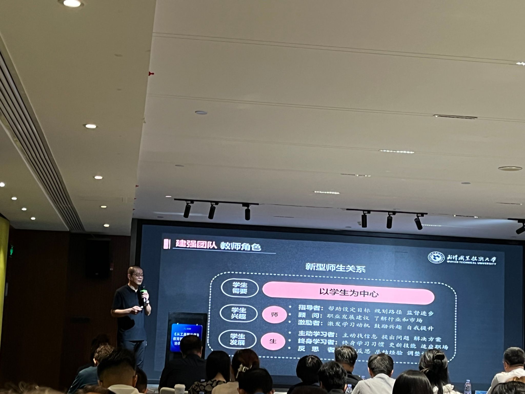 武汉职业技术大学教务处温振华处长分享了《基于产教融合的职教五金建设路径》,他指出教育要服务国家战略发展和区域经济社会发展需求。他详细介绍了学校在推进职业教育“五金”建设方面的探索与成效,通过构建校企协同、产教融合,打造高水平专业群,开发紧贴产业需求的课程体系,实现人才培养供给侧与产业需求侧的高度匹配。推动校企深度合作,形成育人合力,有效提升学生的职业素养和就业竞争力,为区域经济发展输送大批高素质技术技能人才。