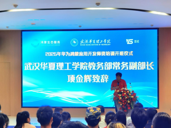 教务部常务副部长项金辉在致辞中表示,本次师资培训是我校“华为-华夏人工智能现代产业学院”的一项重要的社会服务活动,产业学院立足于梧桐湖校区,辐射武汉和鄂州数字产业发展,开展常态化的高校师资培训、学生信创就业培训和企业员工信创转型培训等,为区域经济发展做出贡献。