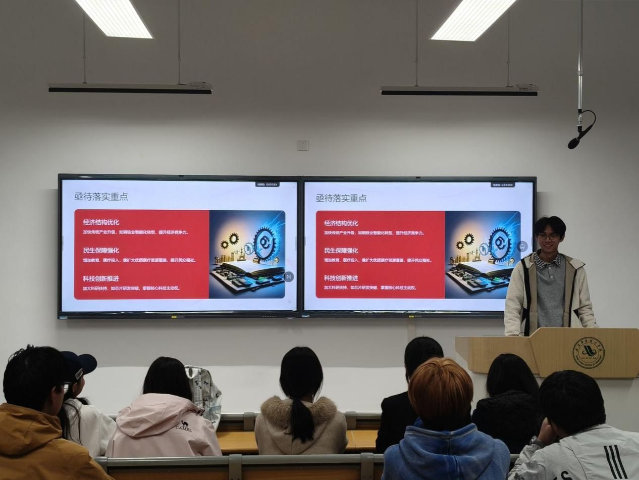 会议伊始,廖汪其带领全体同学系统学习二十届四中全会核心精神。重点解读了全会提出的“坚持党的全面领导”“推进国家治理现代化”“以人民为中心发展”等关键要点,强调全会在经济高质量发展、民生保障、文化传承、生态保护等领域的战略布局,为高校学生工作提供了根本遵循。