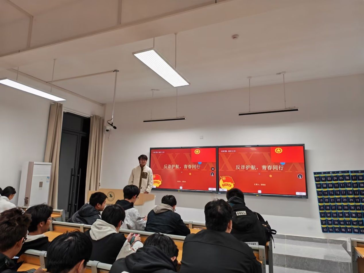 班会开始,吴伟杰围绕当前校园反诈的严峻形势、常见的诈骗类型、真实案例警示及防范技巧等核心内容。数据显示,全国高校年发案量超万起,其中网络诈骗占比高达70%以上。值得警惕的是,诈骗目标已从毕业班学生向大一、大二新生延伸,诈骗手段日趋专业化,甚至借助AI技术。