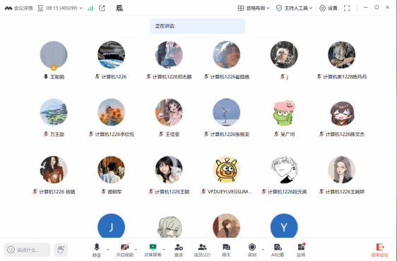我院王助娟老师作为大四毕业班计算机1226的导师班主任兼就业专员,一直都怀有师者传道授业解惑的责任感,鉴于学生们处在实习就业和即将毕设开始的关键阶段,有很多迷茫和不安,王老师与辅导员万王旋老师以及学习委员郑志鹏联动策划了此次交流会,会议有2个主题:一是如何做好毕业选题工作,二是面对实习就业,如何去稳定心态、设立目标并为目标付诸行动。会议于11月27日19:00采用线上腾讯会议的形式进行,万王旋主持会议。