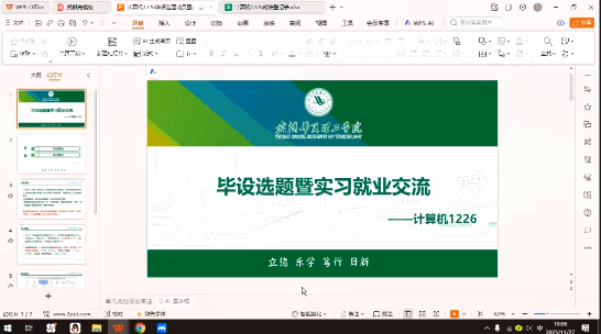 关于毕设选题,王老师强调首先要根据自身的实习就业规划以及兴趣爱好思考选题的大致方向,同时可提前联系想跟着做毕设的导师;其次要密切关注选题开放时间、第一时间登录系统选题并查看选题结果,当双选失败,及时进行二次、三次选题;再次,当选题结束,如若选题与自己的实习就业、兴趣、能力不匹配,要与指导老师沟通和商量更改选题,并在规定时间段内提出改题申请;最后王老师说毕设是大学顺利毕业最后一个重要环节,毕设选题直接决定了后续毕业设计工作的困难程度,提醒大家一定要认真对待选题环节。