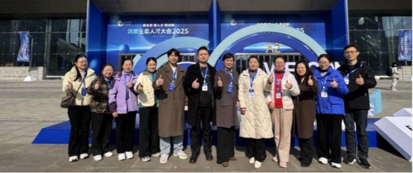 2025年12月27日,以“新生态、新人才、新动能”为主题的2025鸿蒙生态人才大会在武汉光谷隆重召开,来自政府、高校、企业等领域代表齐聚一堂,共商鸿蒙生态人才培养与产业发展大计。我院在张平书记和王绪梅副院长带领下,周熠、黄佩、余晓燕、杜琳、苏永红、王助娟、陈安澜、罗瑜、钱小红、陈远山老师全程参与了论坛研讨、颁奖仪式等核心环节,代表学校深度对接鸿蒙生态的最新发展方向。