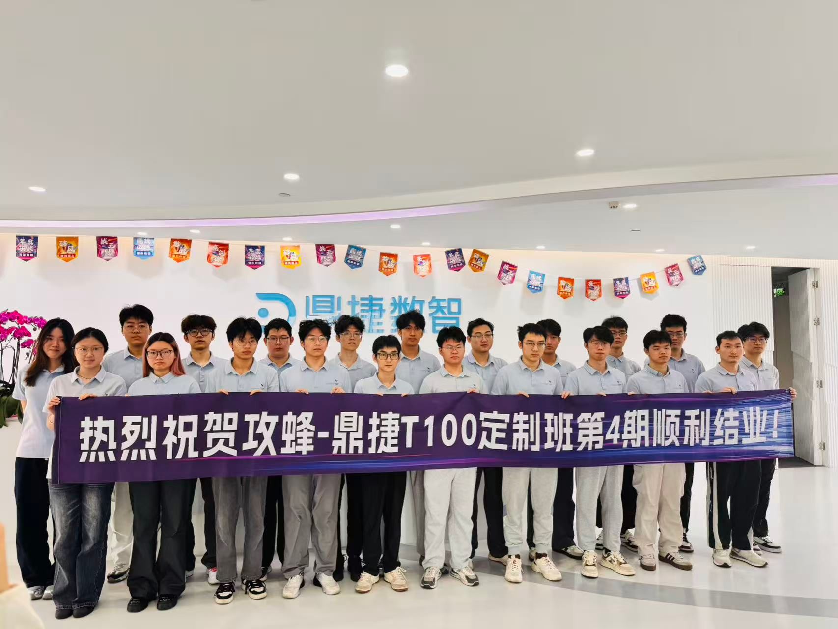 2025年6月22日,鼎捷数智在我校举办了“鼎捷定制班”招聘宣讲会,精准招募ERP开发、MES开发、WMS开发等方向的工程师。经过简历筛选、多轮联合面试等严谨流程,一批优秀学子脱颖而出,进入为期四个月的定制化岗前培训。培训方案设计科学,注重理论与实战结合。前两个月集中学习系统业务、开发平台及编程语言;后两个月则进入项目实战,以真实企业项目锤炼技能。考核标准严格,要求开发时长满100小时以上、任务高质量交付,并通过项目成果验收。企业培训负责人反馈,我校学员展现了极强的学习适应能力、扎实的技术基础与良好的团队协作精神,整体表现超出预期。 经过刻苦学习与激烈竞争,首批9名及第二批5名同学全部通过最终考核,顺利获得入职资格,录用率达到100%。