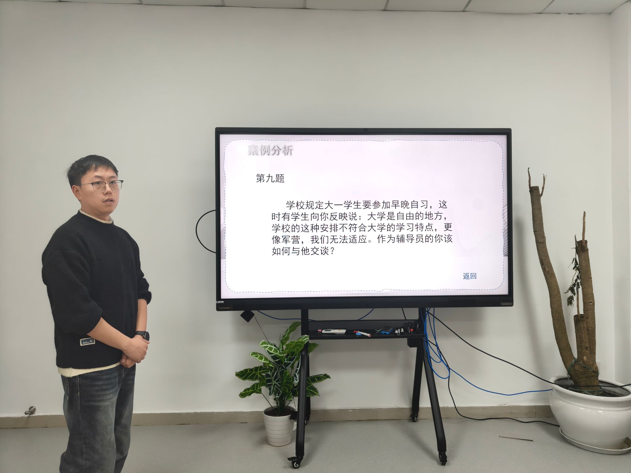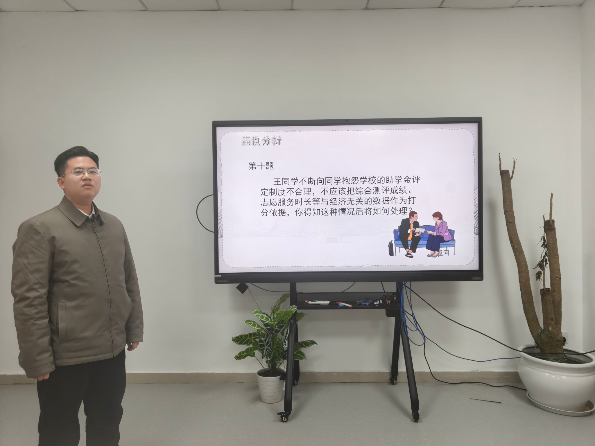 比赛中,学院11位辅导员从21个案例中随机抽取题目,进行现场分析与作答。他们展现了扎实的理论功底和出色的实践能力,充分体现了应对日常事务与突发事件的专业素养。