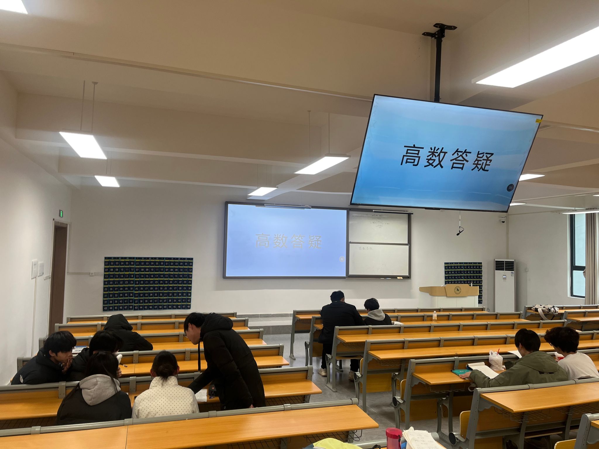 为帮助新校区的大一新生解决复习过程中遇到的各类问题,课程组就考前答疑工作进行了详细部署。根据学生的学习需求,课程组决定采用线上线下相结合的方式开展考前答疑:线上建立答疑qq群和学习通班级进行集中答疑,对学生有疑问的题目进行解答;线下则安排教师前往鄂州新校区在指定教室为学生提供一对一的个性化答疑。因为复习时间较紧,数理课部在每周都安排老师进行线下答疑,确保每位学生的问题都能够得到及时、专业的解答。