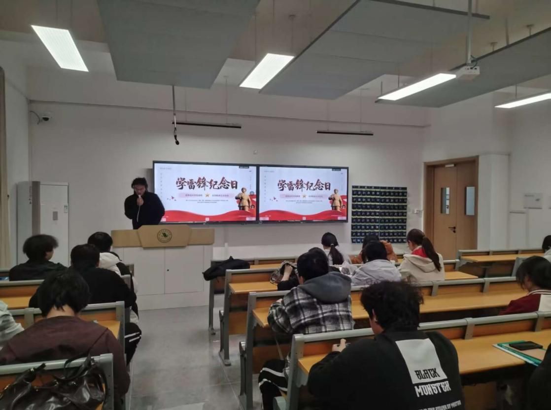 活动伊始,各班委共同带领同学们走进雷锋的故事,以精美PPT为宣讲载体,从“雷锋生平脉络”“经典暖心事迹”“精神核心解读”“时代价值传承”四个维度展开分享。通过时间轴清晰梳理雷锋同志从平凡少年成长为共产主义战士的人生历程,生动讲述了雷锋冒雨送大娘、义务帮工友修工具、省吃俭用捐灾区等经典事迹,让同学们直观感受雷锋同志助人为乐、爱岗敬业、勤俭节约的高尚品格。