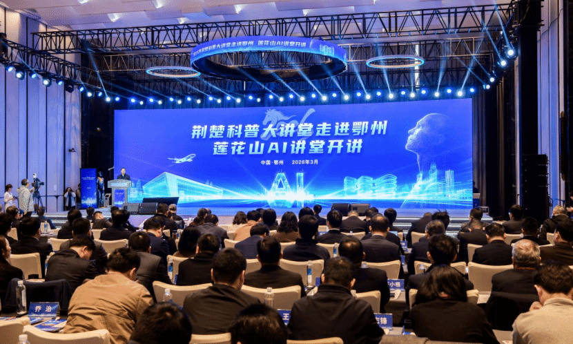 3月21日,2026年荆楚科普大讲堂走进鄂州·莲花山AI讲堂活动在鄂州市举办。我校党委书记丁德智、副校长胡水兵、科研部部长张城芳、信息工程学院院长夏婷受邀参加活动。