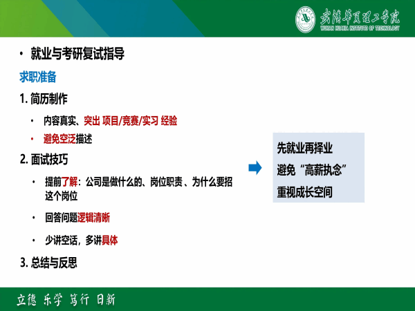 此外,张老师还特别提醒同学们要做好时间管理,在准备复试与求职过程中做到统筹兼顾,避免顾此失彼。同时保持良好心态,增强信心,以从容、理性的状态面对压力与竞争。