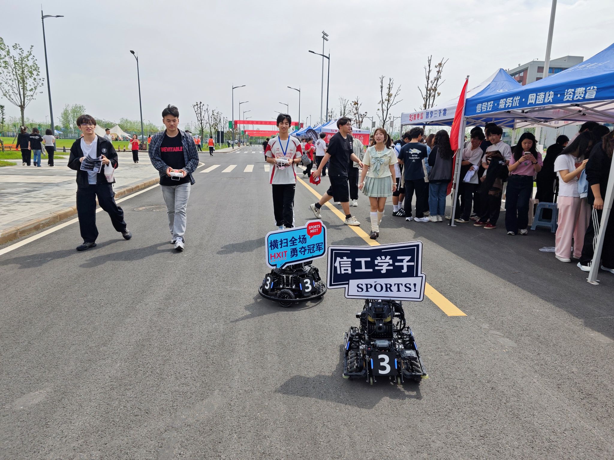 4月10日,梧桐湖校区新生运动会火热举行。电子与通信工程系骨干教师赵京、阮波、唐家乐组织信息与电子设计协会骨干成员,携电赛参赛作品及协会自制的RoboMaster机甲来到现场,为运动健儿加油助威,并同步开展招新宣传活动。
