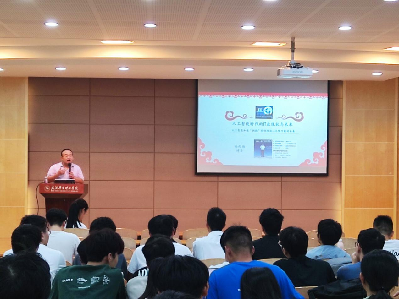 2022年9月28日晚上7点,信息工程学院邀请守中集团CTO(首席技术官)喻西厢博士进行了主题为“人工智能时代的IT现状与未来”专家讲座,本次讲座由软件工程专业负责人杜琳老师主持,苏永红老师协助。喻先生先后在武汉大学、中科院计算所、深圳瑞福特、深圳国泰安工作,具有20多年IT行业的从业经验,针对学生关心的问题,从IT现状与未来、计算机专业就业探讨、软件研发与IT技能工程实践、软件开发中长期职业规划、理性就业与可落地的行动五个方面进行了演讲。