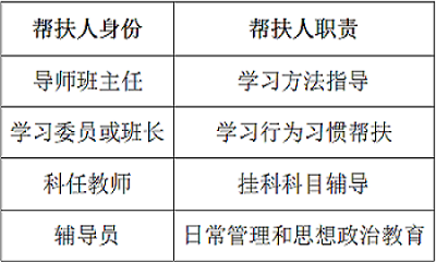 本次帮扶分为四个层面展开,将导师班主任、辅导员、科任教师和班委融合在帮扶队伍中,采取多对一定点帮扶学业困难学生。由学习委员或班长负责学业困难学生的学习行为习惯帮扶;导师班主任将从学习方法上进行指导;而辅导员通过对学生日常管理和思想政治教育帮助学生解决意识懒散,思想懈怠的问题;最后学院还将挂科科目的科任老师,结合成辅导小组,更有针对性的帮助学生完成学业。