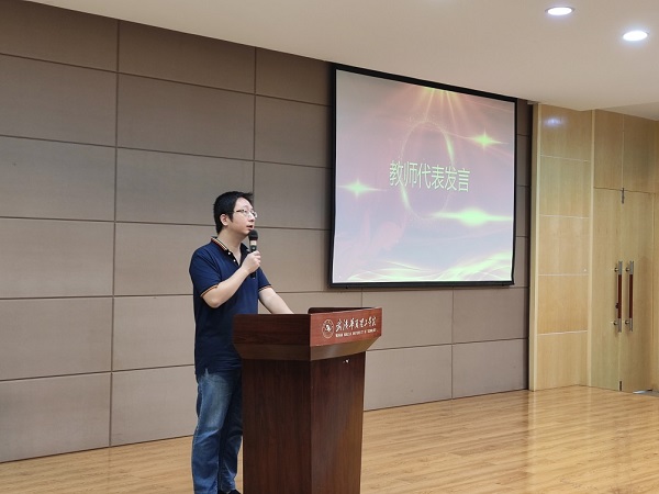 典礼期间教师代表、学生代表分别从教书育人和学习生活两个方面相继进行了发言。