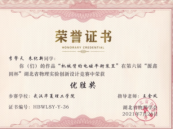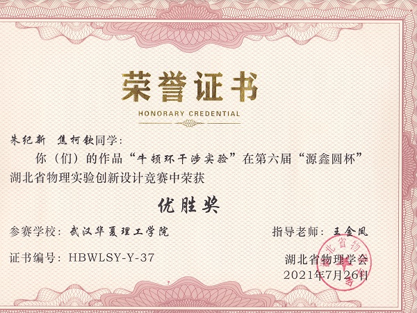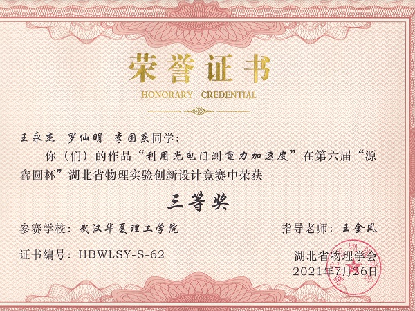 近日,第六届“源鑫圆杯”湖北省大学生物理实验创新设计竞赛结果揭晓,我校代表队的作品“利用光电门测重力加速度”荣获三等奖。