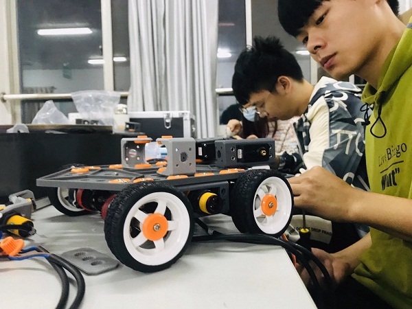 几度春秋,五年寒暑。实验室外的柳树绿了又黄,黄了又绿,他带的学生团队换了一批又一批,只有她一直坚守在这个位置上。“有多辛苦就有多少次想放弃,就要付出多少努力来化解,有时候支撑我们坚持和努力下去的可能只能是对机器人事业的这份持久的狂热。”吕雪说道,为了不断提高机器人的灵敏度和精准度,她和每一位团队成员从早到晚都泡在实验室里敲代码,做测试,大家一起讨论如何用代码实现这个功能,如何用代码优化等等。由于经常会错过寝室关门的时间,团队成员最后干脆把自己的被褥、洗漱用品搬到实验室里,累了困了就地睡一会儿,醒了接着组装。