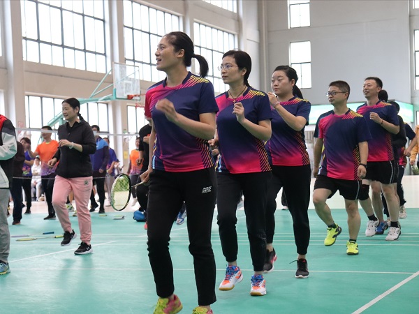 比赛开始前,为了避免老师们在比赛中受伤,由校工会副主席彭文耀老师带领大家做热身运动操。本次比赛赛制与以往不同,是以各学院分工会组成的五只联队为单位进行的单循环积分制。在比赛中,我院老师遵循友谊第一、比赛第二的原则,团结一致,奋力拼搏,斗志昂扬,健步如飞。强有力的挥拍,灵活的位置调整,精确的接球,高技巧的扣杀,行云流水般的动作背后离不开日复一日的练习。