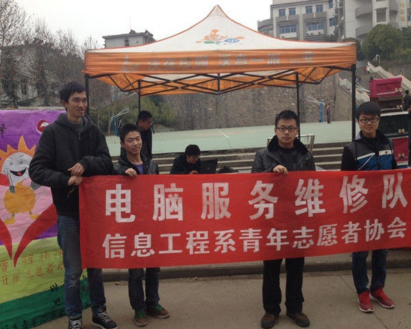 3月5日中午全院青协在一食堂门口上召开了志愿服务月启动仪式,暨志愿者宣誓大会。青年志愿者协会属下的三支志愿服务队:汽车系义务维修自行车队、信息系电脑义务维修队、外语系讲师团;从当日开始分别进行了各自的志愿服务。信息系电脑义务维修队在全院为院内老师、学生无偿维修电脑。队内人员公开联系方式上门维修电脑,不仅为教师和学生们提供了便利还为他们省下了高昂的电脑修理费。外语系讲师团在全校义务开展英语学习活动,为想学好英语的人提供便利。汽车系义务维修自行车队在院内义务维修自行车,方便了许多爱车族的学习生活。其他一系列的志愿服务活动也会相继展开。