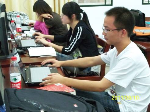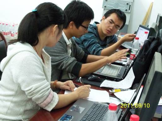 正在奋战的第三组(潘雄,刘丹,王榕)