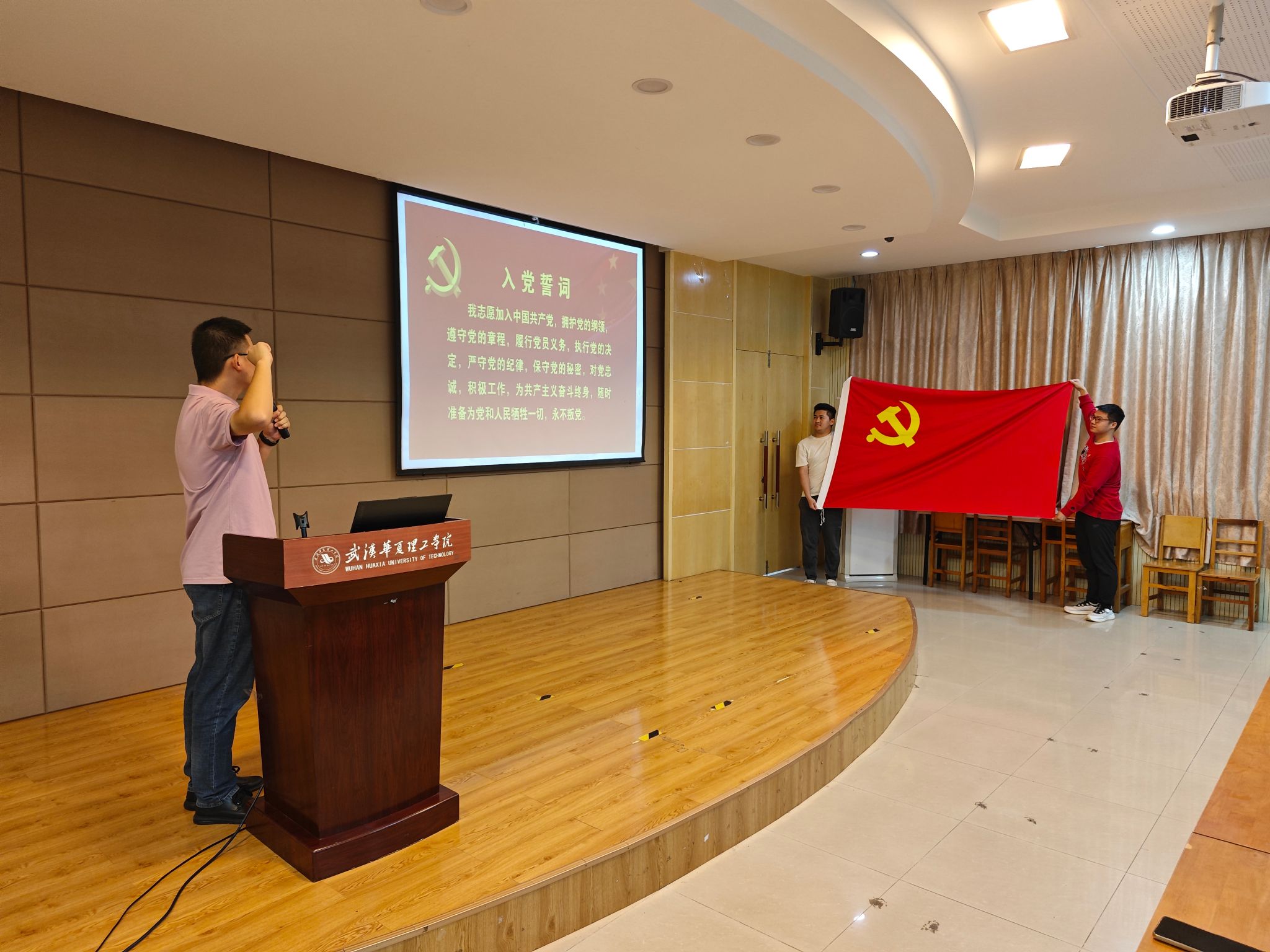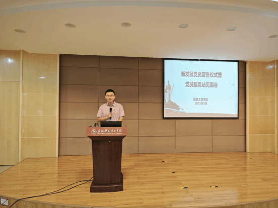 为提升党性修养,践行初心使命,充分发挥学生党员先锋模范作用。9月22日12:10,我院在2-201报告厅召开2023年上半年新发展党员宣誓仪式暨党员服务站见面会,学工办主任张琦,学生一支部书记李勇,支部委员徐广、丁启航,学生四支部书记邓雯、支部委员李洋,团总支副书记陈远扬参加了会议,会议由党总支组织员吴乐主持。