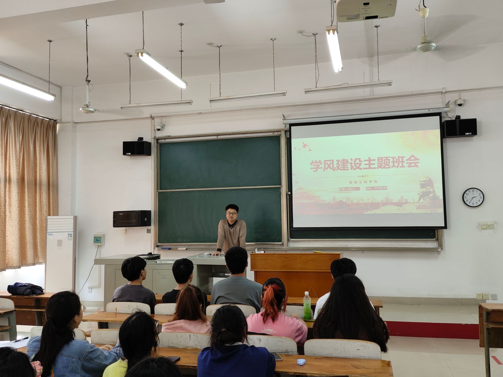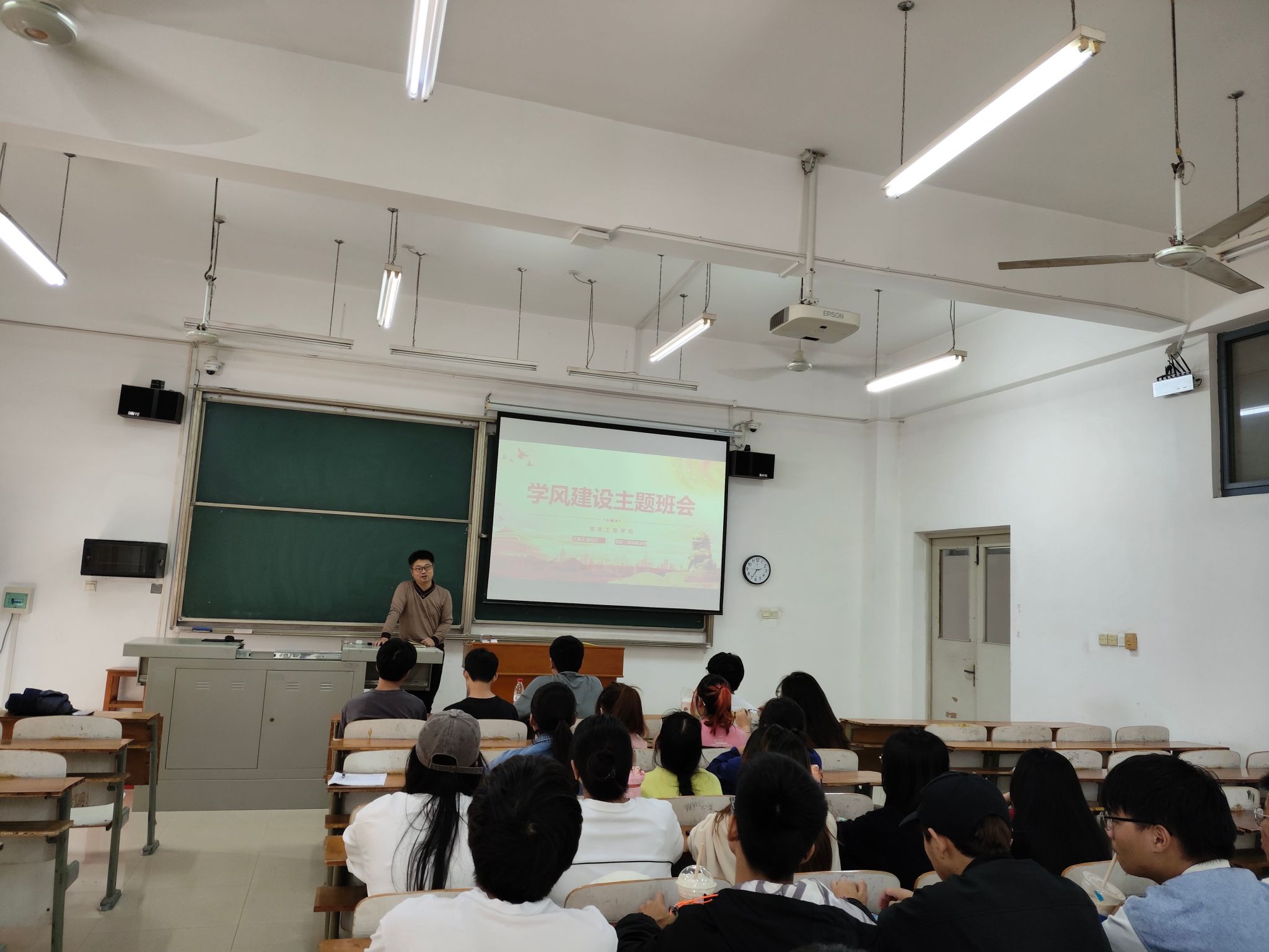 会议开始,程老师首先强调了学风建设在学生成长中的关键作用,鼓励学生们培养自觉的学习习惯和坚持不懈的学习动力。通过多年工作经验和学生工作案例分享了学风建设的重要性,强调了每位学生在班级中的责任,以及如何建立积极的学习氛围。他提到,建立一个积极向上的学习环境不仅有助于个人发展,也有助于全班同学一同进步。此外,他还强调了互相尊重和互帮互助的价值观,鼓励学生们积极合作,互相扶持,一同攀登学业的高峰。