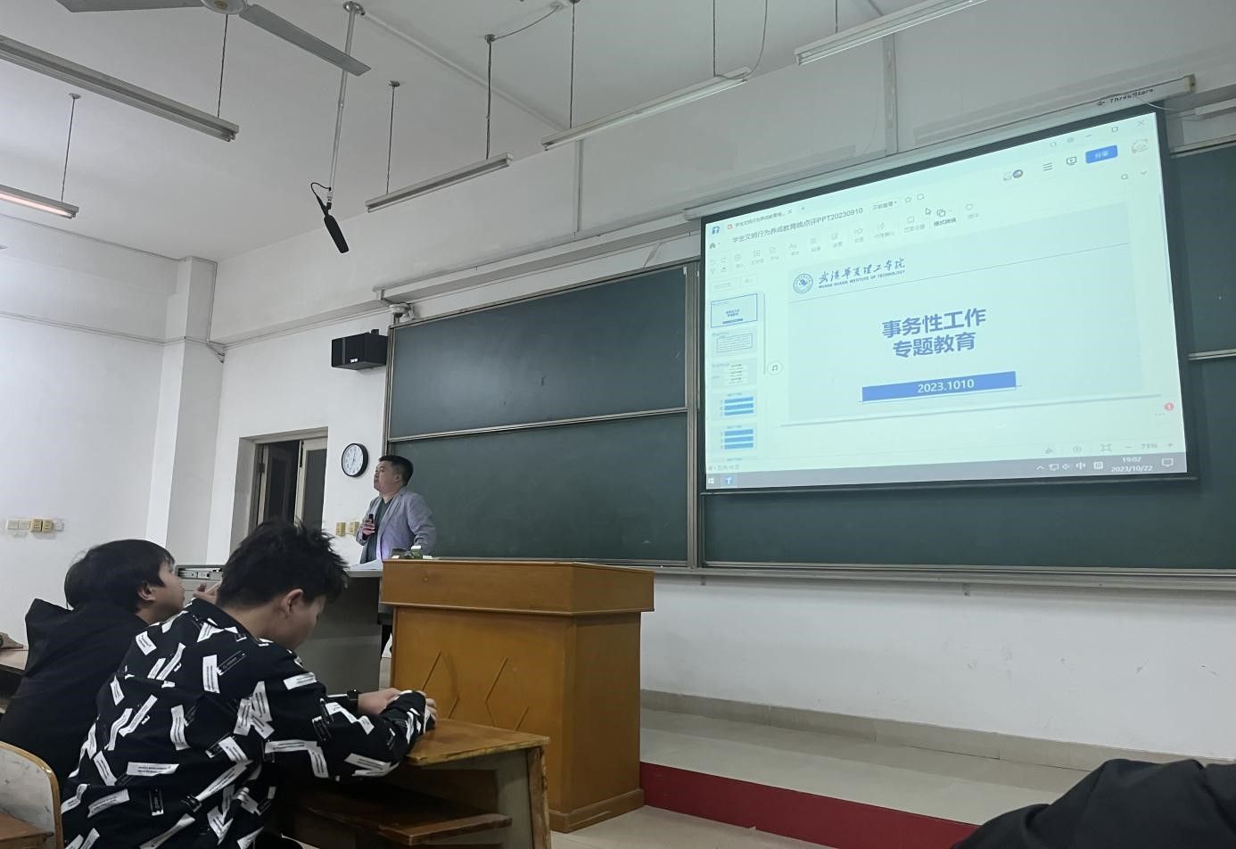 为加强我院校园精神文明建设、学生道德文明建设,通过文明行为养成教育活动,加强学生的自我教育、自我管理,内化学生自觉养成的文明意识,全面提高学生的综合素质,10月22日,我院辅导员彭贝贝老师利用晚点评统一开展事务性工作专题教育。