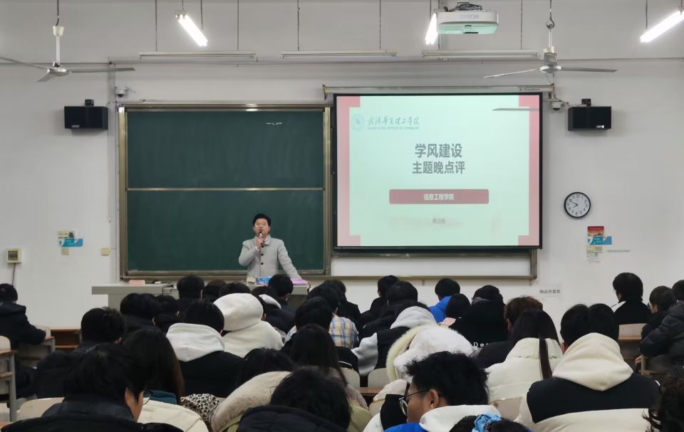 为引导我院学生树立正确的学习态度和价值观,信息工程学院22级辅导员彭贝贝、陈远扬、万王旋于2023年12月17日晚在晚点评教室举办了“学风建设”主题晚点评活动。此次活动旨在弘扬积极向上的学风,激发学生学习的热情,提高学习水平,培养创新思维,助力学生全面成长。